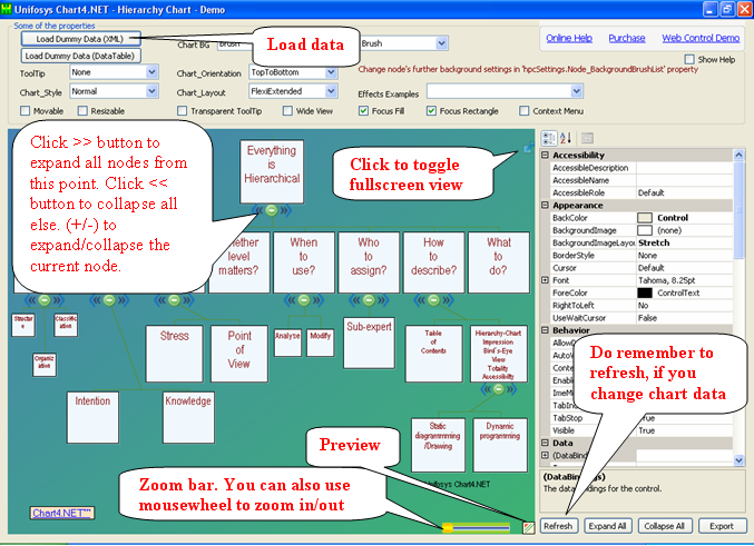 - LargeOrganization layout to effectively support large organization charts : ByNodeSize/FitToScreen/ZoomToScreen.